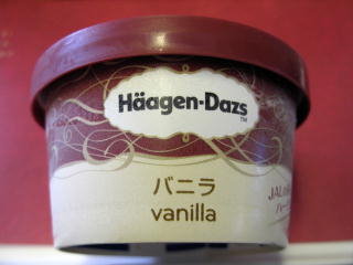 メシの後に出てきたハーゲンダッツ。 これがめちゃくちゃに固かった。 溶かして喰うのに一苦労した。 |