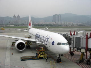 | 羽田発松山行きJL097便。B777。 字面だけだと国内線そのものだが、 台湾の松山機場行きです。 松山にて。 |