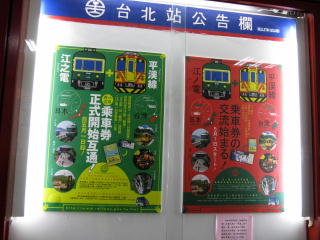 台鉄平渓線と江ノ電がタイアップしている。 お互いに使用済みの1日乗車券を タイアップ先の鉄道の1日乗車券と 交換してもらえる (ひとまず2016/03/31までです。)。 |