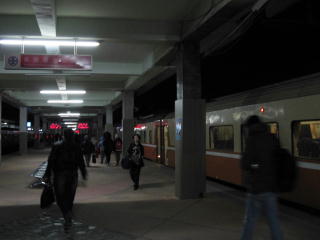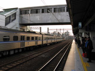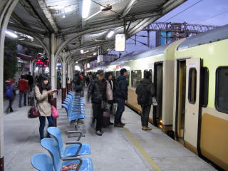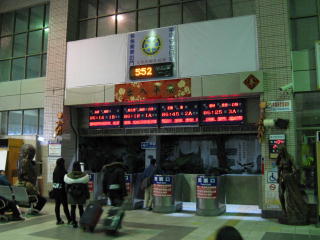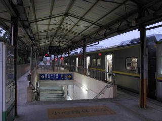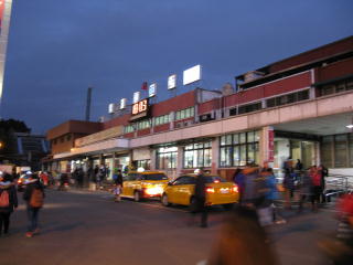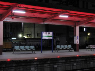 | 台東行きの夜行の座席急行「莒光號」に 始発から乗るために、 さっきも来ている樹林に、また来た。 台北と同じく、列車が接近すると ホームに埋めた赤燈が点滅するので、 夜はホームの屋根に反射して、 おどろおどろしい情景になる。 |