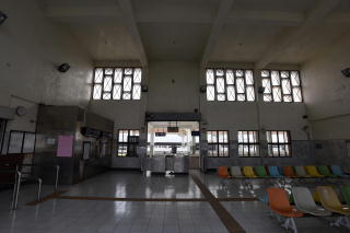 | 加祿車站の駅舎。 | がらんとした待合室。 立派だが、俺以外、客は誰もいない。 |