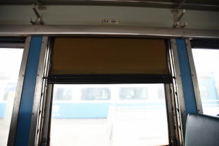 入線はしていたものの、 室内灯が点いていないので、 乗車はまだかと思って ホームをぼんやり歩いていたら、 なんと地元の客は もう平然と乗っていた! 乗降用のドアは手動だしね。 |
