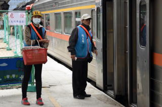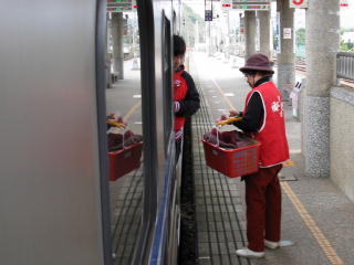 ひととおり客を捌いた売り子。 俺は池上で敢えて乗り換えにしたため、 ここまで乗ってきた自強號が発車してから ゆっくりと2個をGETした。 |