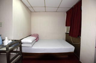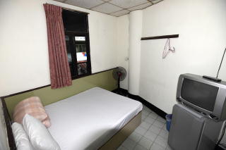 1階がフロントで、 おばちゃんが2人いた。 日本語はほとんど通じないが、 「ろくひゃくぅ」(宿泊料600圓のこと。) とは言っていた。 |
