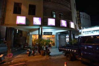 | 斗六車站の南口から歩いて5分ほどの 「桂賓大旅社」。600圓。 ロータリーに面して建っている。 丸いビルである。 |
