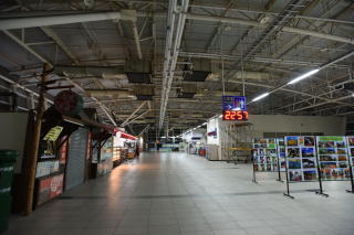 ←の元自販機スペースは金属が剥き出し。 | 天井は高くて開放感があるが、 ちょっと寂しい光景。 |