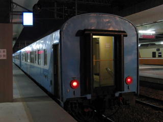 花蓮には02:55着。 5分間停まり、ちょうど03:00発。 この列車は沿線の駅にこまめに停まるが 各駅の到着案内は自動音声で流れるし、 車内の減光はしないしで、 ゆっくり眠れる環境ではあまりない。 ただし、発車や到着時の日本の客レの ような「がったん」という衝撃はなく、 その点はとても評価できる。 |