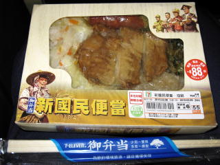 | 荷物車。 | 樹林車站近くのイレブン屋で 買っておいた「新國民便當」。 値引き期間中で48圓。 デザインがいいゼ! |