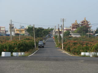 加祿車站前の道。 約400m先に信号があり、 大幹線の省道台1線に出る。 さて、いよいよ外国の路線バスに 初挑戦するゾ。 |
