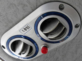 デッキと客室の間のドア横のゲージ。 身長150cmを境に大人(全票)と 小人(半票)に分けられる。 大人でもちっこい人は半額なのだ。 |
