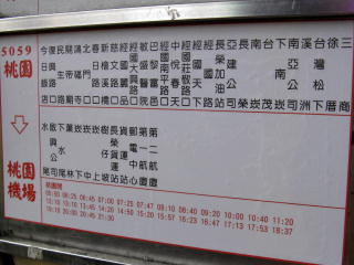 | 桃園機場(桃園国際空港)行きのバス停。 桃園車站を背にして最初の信号を右折し、 少し進んだイレブン屋の前にある。 |