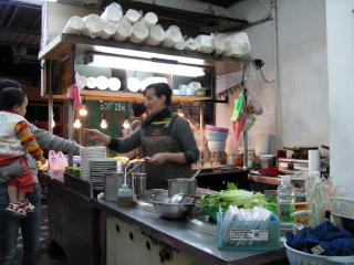 イレブン屋の隣に小吃屋があった。 バスまでに時間が少しあり、 寒くもあったので入ってみた。 |
