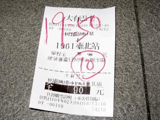 | 恐ろしく立派な台北車站の建物。 | 台北から區間車に乗り、 約1時間45分で大渓に着いた。 ここでも硬券を買うのだ。 |