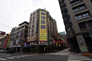 | 台北車站北口から徒歩7~8分の ところにある「獅城旅舘」。 この写真を撮った交差点の 左の向かいにイレブン屋がある。 宿にもWi-Fiが整備されていたが、 PCは接続できなかったので、 イレブン屋の無料Wi-Fiがとても重宝した。 |