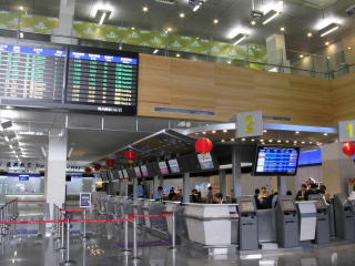 | 松山機場の国際線ターミナル。 | 羽田行きJL098便。 B777。 |