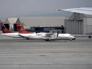 トランスアジア航空機。 今回台湾に来る直前に、 写真とは別の機体が台湾で墜落した。 |