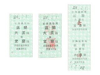 | 大渓でGETした硬券の一部。 2015/02現在、この駅には自販機も 端末も導入されていないので、 当然硬券での発売だ。 券は全て新券で、券の状態もよい。 でも、いつ自販機や端末が導入 されるか分からないので、 買えるときに買っておきたい。 |