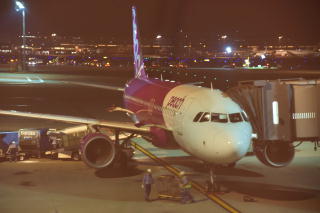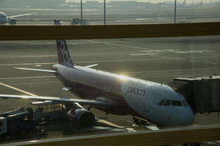 MM858便。 AIRBUS A320-200 羽田にて。 光線の具合か、なぜかうまく 色を表現できなかった。 |