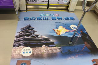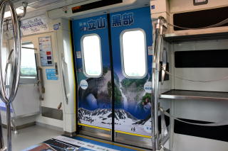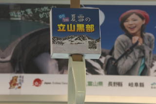 | 台北行きのMRTの直達車の車内に 立山黒部アルペンルートを 主とした、富山、長野、岐阜の 広告があった。 これは乗降ドア。 |