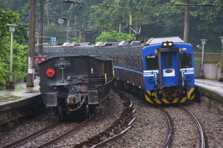 | 台東から2時間弱で加祿に着いた。 | 加祿で「莒光701次」と交換する。 かなりのスピードで通過する。 |