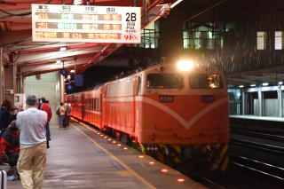 | 23時ちょうどに入線した 「莒光616次」。 雨が降っている。 |