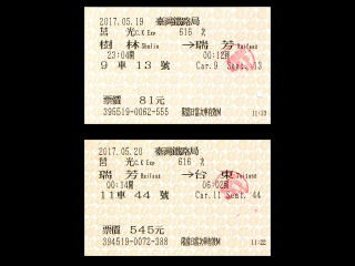 区間分割で何とかならないかと 悪戦苦闘したら、瑞芳で分割すれば 全区間を指定席に乗れることが分かり、 ←の無座票は退票(=払い戻し)した。 |