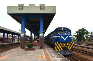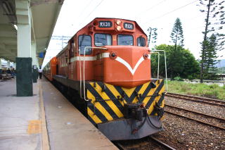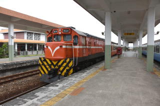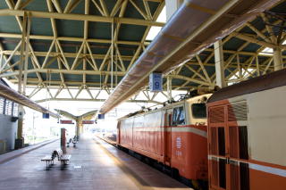 潮洲で発車待ちの「莒光562次」。 潮洲はヨーロッパ的な近代的な駅だ。 |