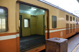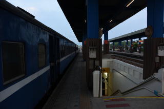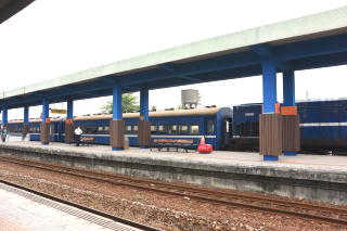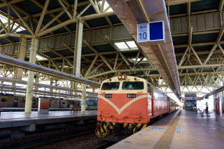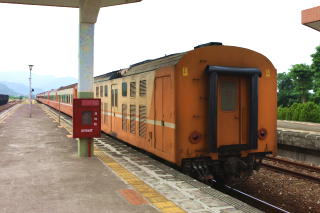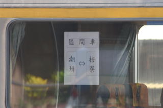 | いよいよ最終日。 前日に台北方面の特急列車の指定席を 東部幹線・西部幹線で探したが、 軒並み満席だった。 日曜日の午前発だからだろうか。 無座でもよかったが、やっぱり席を 確保しておきたかったので、 約7時間かかるが莒光號をおさえた。 潮州始発なので「自強304次」の無座で 枋寮から潮洲へ移動する。 この写真は、当初乗ろうと思っていた 枋寮始発の「區間車3518次」。 特急車両を使っていた。 |