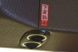 下車鈴に「降りるベル」と 日本語でも書いてあった。 |