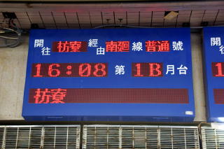 台東に出て「普快3672次」に乗る。 これは台東車站の旧型の発車案内。 これもいずれなくなるんだろうね。 |