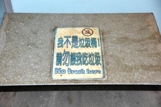 車内にあったゴミ箱と思われた箱。 投入口が随分薄っぺらいと思ったら 「俺はゴミ箱じゃないから 俺にゴミを喰わすな」ってさ(笑)。 |