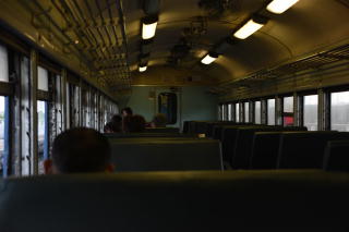 | 少し光量を落として撮影。 「夕暮れ迫る感」が出てるかな。 「普快3672次」は、 進行方向左側が海で景色がいいため 客はほとんどが左側に座る。 進行方向右側に乗客が集中する 「普快3671次」の逆だ。 |