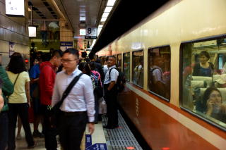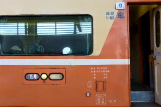 | 折りたたみ手動ドアの車両は 初期タイプ。 俺の乗った車両は中華民国68年、 つまり1979(昭和54)年製造だね。 |