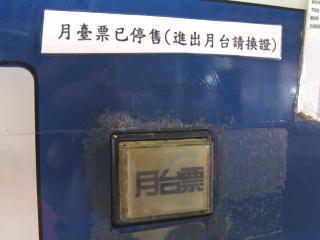 潮洲車站の自販機にも 月台票のボタンがあったが、 「発売中止」のメモが貼られていた。 |