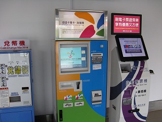 空港のバス乗り場にも悠遊卡の 自販機&チャージ機があった。 これなら、混んでるMRTの きっぷうりばまでわざわざ行って チャージの操作をしなくても、 ここでゆっくりやればいいんだ。 |