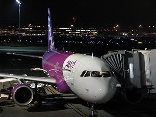 | 新宿から空港バスに乗り継ぎ、 羽田空港の国際線ターミナルで お馴染みの夜明かしをした。 そして朝になり、 ピーチのMM859便に乗り込む。 今回は、1個の預け荷物や、 前もっての座席指定ができる 下から2番目の運賃を選んで、 右側の前方窓側席を押さえておいた。 ピーチは2018(平成30)年10月から、 機内へ持ち込む荷物の重さを、 それまでの10kgから なんと7kgに変更してしまった。 お気楽な荷物でサクッと移動する 客なら対応できるんだろうけど、 デジイチやPCを機内に持ち込む 俺のような客には厳しい変更である。 |