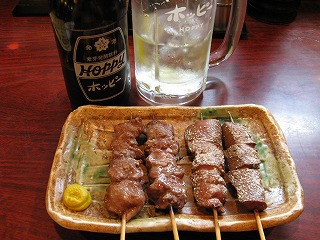 ホッピー(白)と、 カシラとレバー。 どれも旨いのだよ。 「加賀屋」はチェーン店だが、 店によって献立や出来映えが全く違う。 フランチャイズ元が違うんだと思うが 実際はどうなのかな。 |