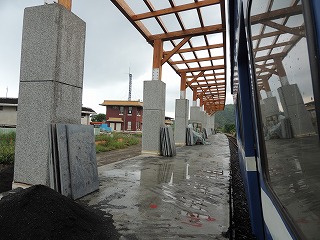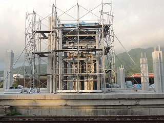 ホームの屋根を作っている。 以前のタイル貼りのホームは、 南国的でよかったんだけど、 変えないといけなかったのかな…。 |