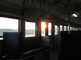 黄昏が迫っている。 | 沿線には、収穫間近のマンゴー がたわわに実った畑が広がる。 |
