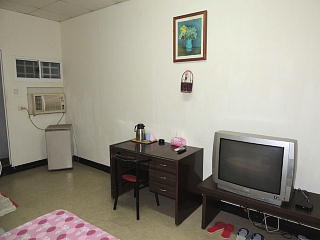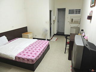 宿探しをする。 最初に訪ねた、宜蘭車站から 歩いてすぐの「天成旅店」に 空室があったので、投宿した。 この写真はよく見るとブレている。 |