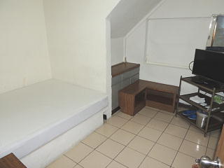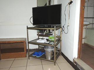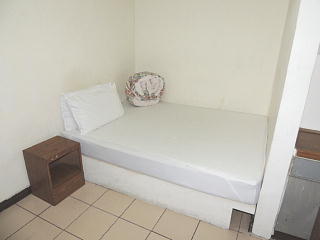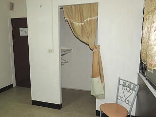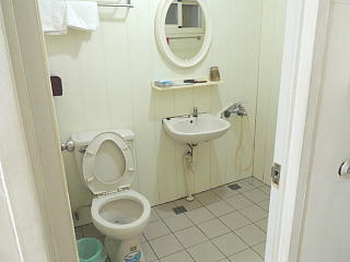 今回は203号室。 鍵の札は「23」だったけど(笑)。 入口ドアから撮影。 窓と冷蔵庫がない。 1泊700圓。 |