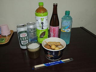 う~ん、泊まってみたい(笑)。 | 結局、今日もイレブン屋での 關東煮(おでん)+台湾啤酒+米焼酎 という、なんの工夫もない献立に なってしまった。 でも、これだと、宿の部屋で呑んで、 酔っ払って気持ちよくなったら そのままベッドに沈没できる という利点がある。 台湾のメシ屋は基本的に酒がないか、 せいぜいビール程度なので、 日本の居酒屋のイメージの 「呑み助」がしにくいのだよ。 もちろん居酒屋(熱炒)もあるけど、 軒数が少ないし、それに、 イレブン屋よりやっぱり高くつく。 ビンボー症が染みついている(笑)。 |