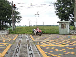 平交道から9號装車地方向。 踏切小屋はもちろん誰もいない。 菅笠のおばちゃんが、 バイクでびぃ~っと走っていった。 |