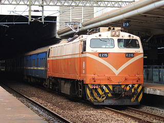 お、荷物列車かっ、 と思いたくなるが、 「莒光522次」の台北寄りに 荷物車が3両くっついていたもの。 橋上駅舎下の暗い部分が 莒光號の客車をうまく隠してくれて 荷物列車的に撮れた(笑)。 |