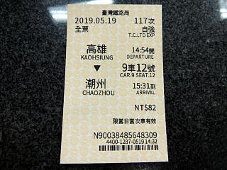 | 高雄から枋寮へ向かう。 潮州までは「自強117次」 で、快適に移動する。 |