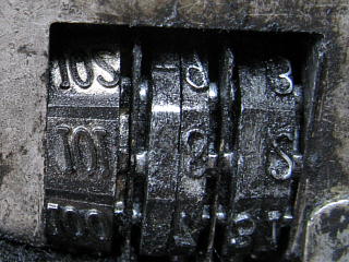 今回気が付いたのだが、 年号の3桁の文字輪は、 もしかしたら樹脂かもしれない。 というのは、 この写真でも分かるが、 「102」のベースの部分が白い。 これは、撮影時の光の加減ではなく、 明らかにインクの付いていない 素材の部分の色だ。 |