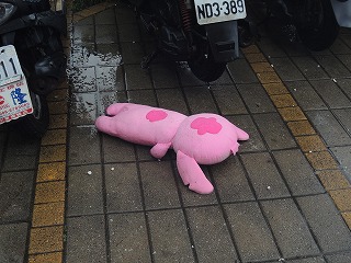 宿を出る直前にスコールに見舞われ、 すぐに止んだ。 宿から歩いて枋寮車站に向かう途中に びしょびしょになったぬいぐるみ が落ちていた。 なんか痛々しい。 これを大事にしていた子は 悲しいだろうね。 |