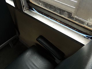 | 写真ではよく分からないが、 窓を開けたまんまで 留置していたもんだから、 窓枠やシートが濡れている。 この写真の窓は俺が下げたが、 撮影前はほぼ全開! |