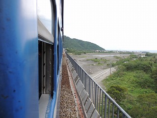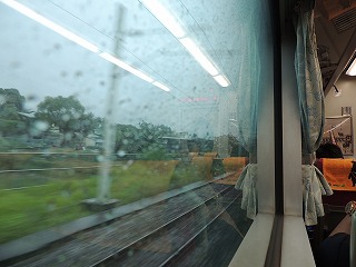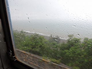 台湾最南端の駅である 枋山へ向かっているが、 雨が強くなり、せっかくの車窓も 霞んでよく見えない。 |