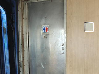 トイレも一応あるが、 使えたのは3輛のうち1輛だけ。 緊急用と考えたい(笑)。 |